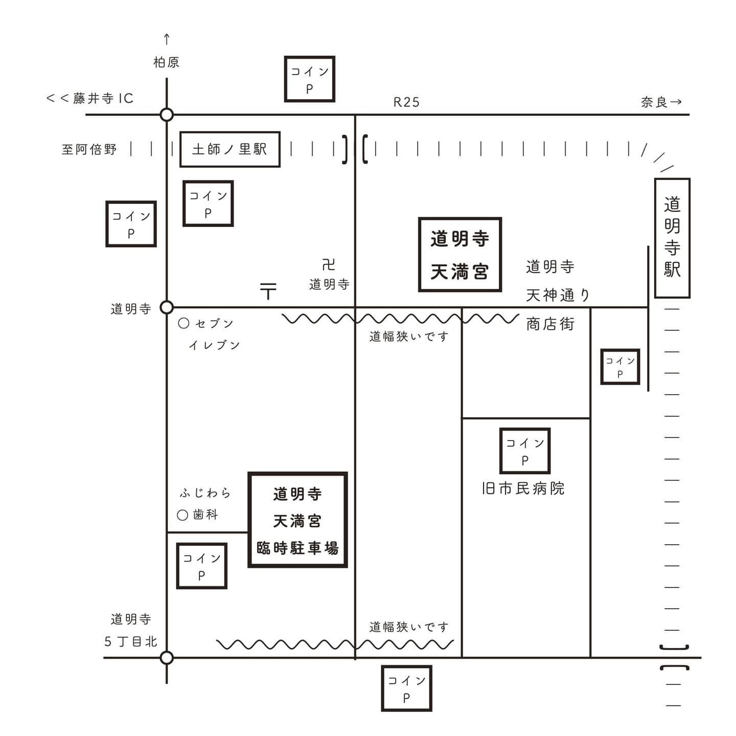 ・道明寺天満宮から徒歩5分の場所に【臨時駐車場】をご用意しています。